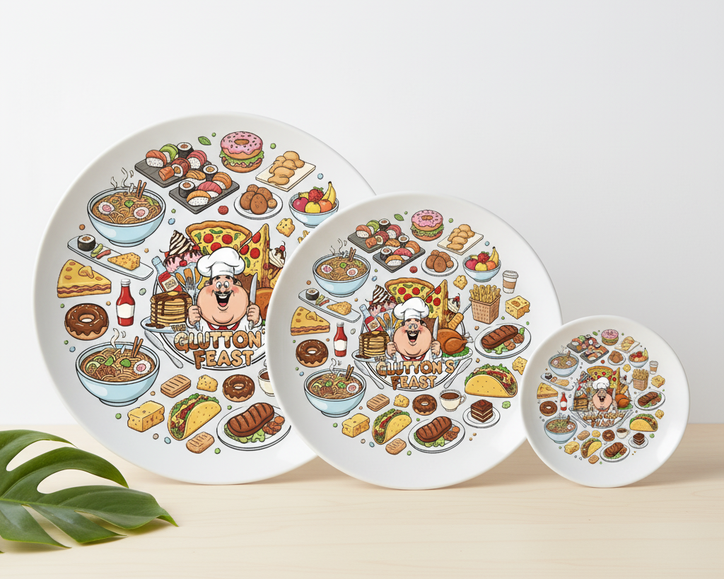 愉快なロゴが食卓を彩る!食いしん坊プレート(3枚セット)